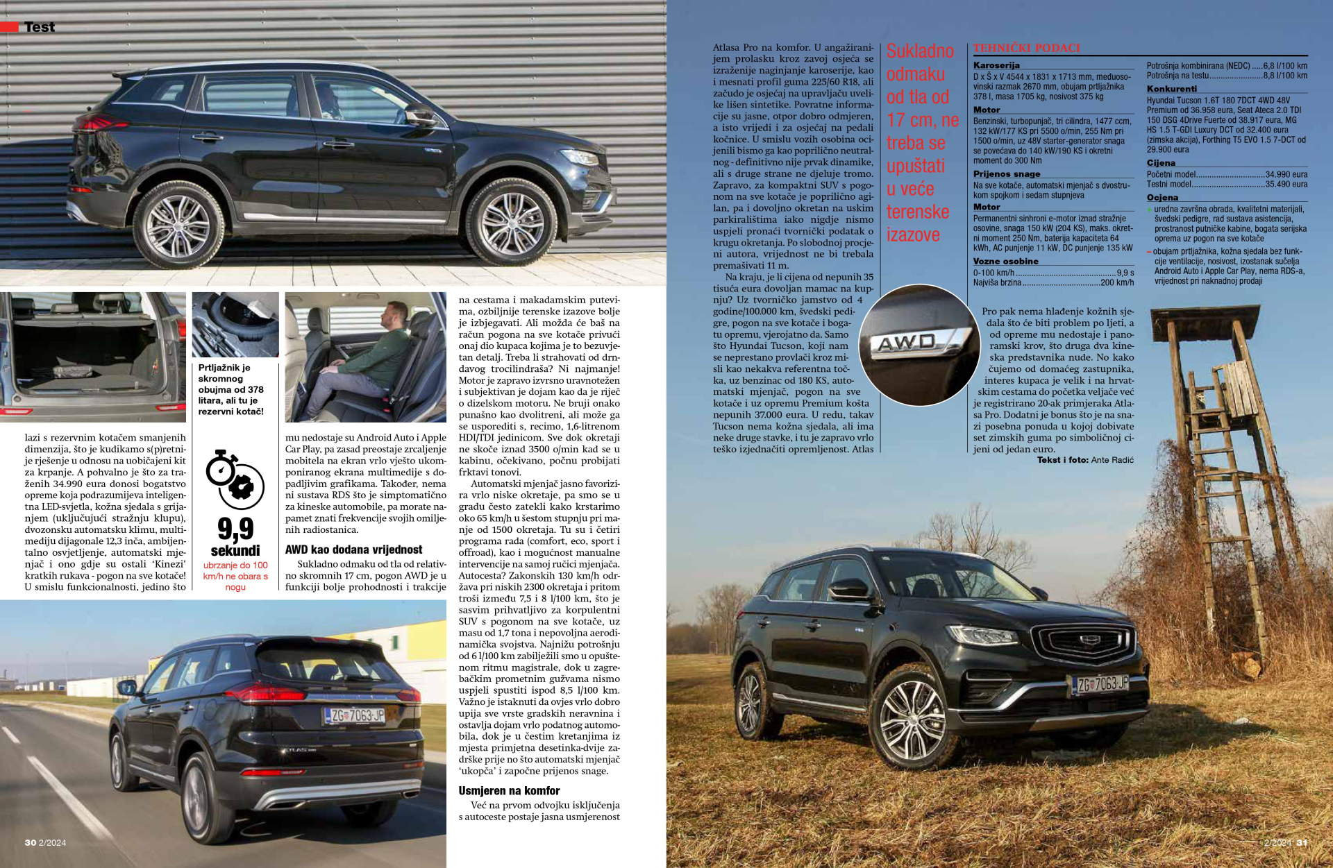 Početak nove 2024. obilježio je ulazak i treće kineske marke na hrvatsko tržište. Prije godinu i pol led je probio MG koji je u međuvremenu našao put do 1100 domaćih kupaca, a svoje mjesto pod suncem od jesenas traži i Dongfeng Forthing. Ima li mjesta i za Geely? Sudeći prema inicijalnom interesu kupaca, definitivno da. Svi ti ‘kosooki’ SUV-i nastali su prema provjerenom i traženom receptu - dopadljivo su dizajnirani, bogato opremljeni i tehnički neproblematični. Tako bi barem trebalo biti, jer Atlas Pro ispod lima skriva velik dio švedske tehnologije.